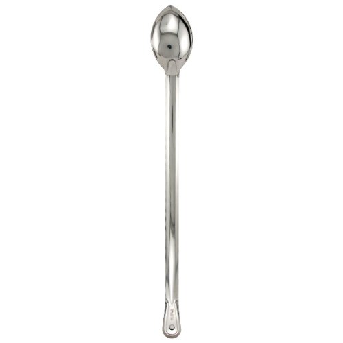 High quality stainless steel spoon with beer bottle opener on one end. Rigid single-piece construction. Made of smoothly polished heavy 18 gauge stainless steel. Commercial grade. 24 inches long.